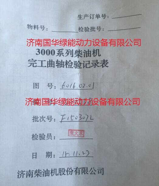 某燃?xì)獍l(fā)電用戶從我公司訂購1臺16V190曲軸發(fā)貨。