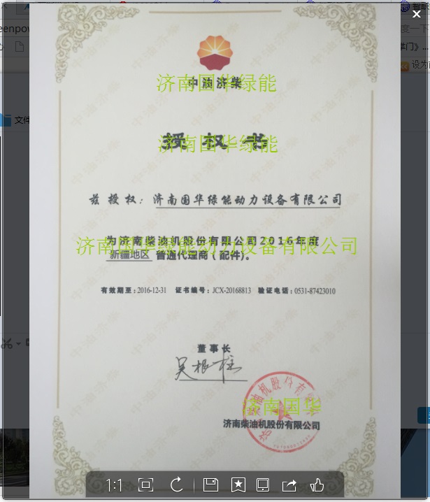 國華綠能公司獲得濟柴2016年度產品代理授權